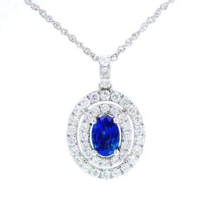 Ladies 14k Sapphire and Diamond Pendant Necklace 1.33ctw