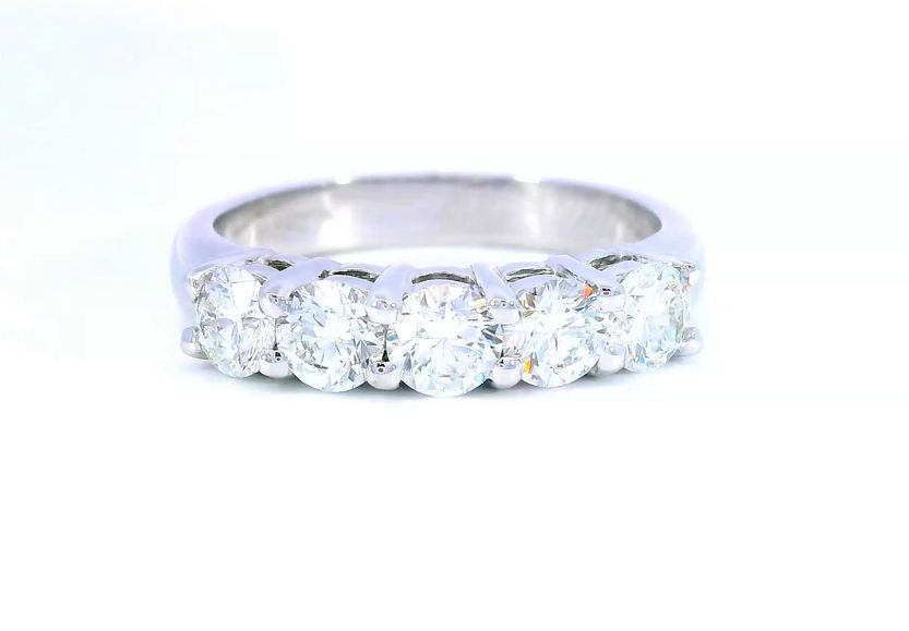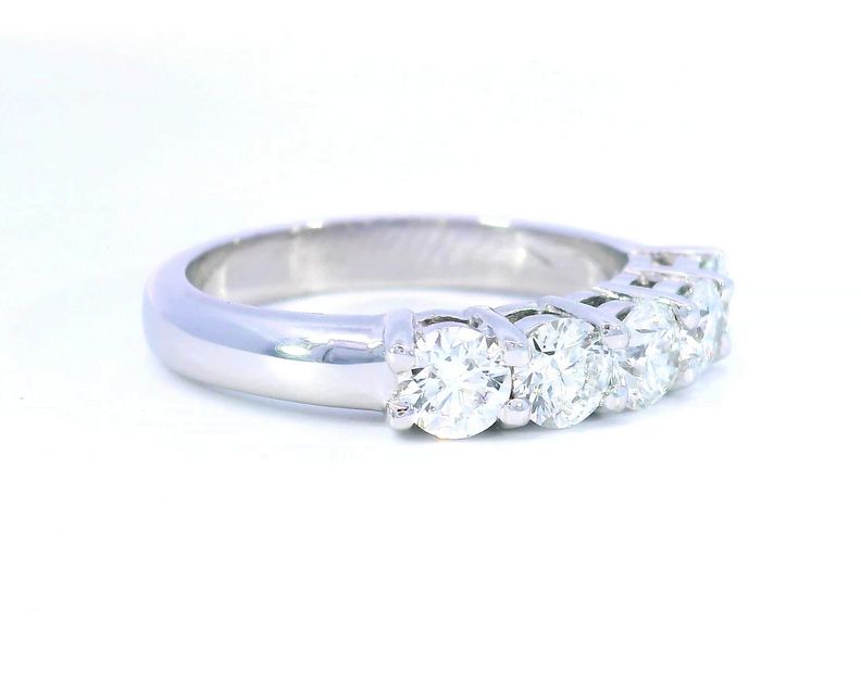 Stunning brilliance in a classic Wedding/Anniversary band design with 5 round brilliant diamonds for 1.19ctw in engagement ring quality (G-H/VS2) in a common prong 14k white gold band mounting in a size 6.5 RDB#329 Reg.$8650 Disc.$6495.